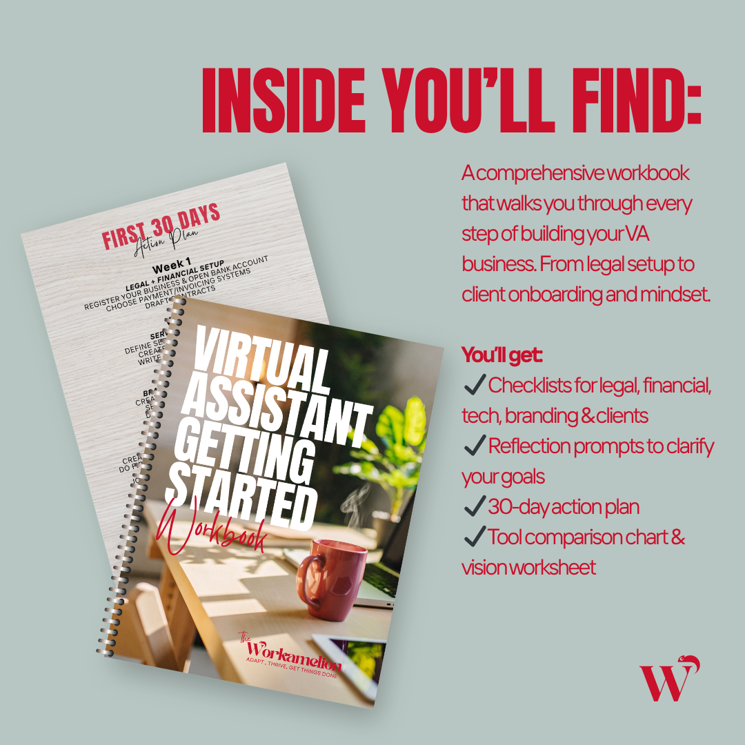 A comprehensive workbook that walks you through every step of building your VA business—from legal setup to client onboarding and mindset.